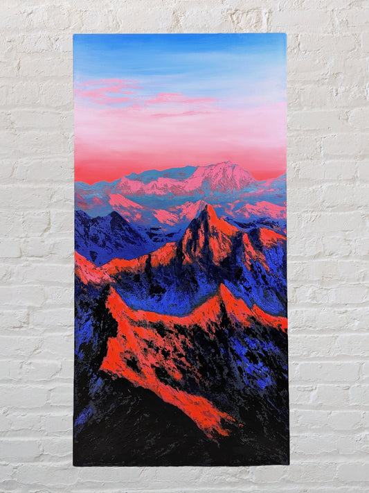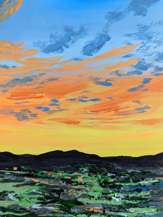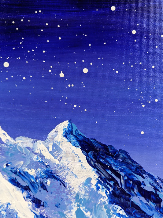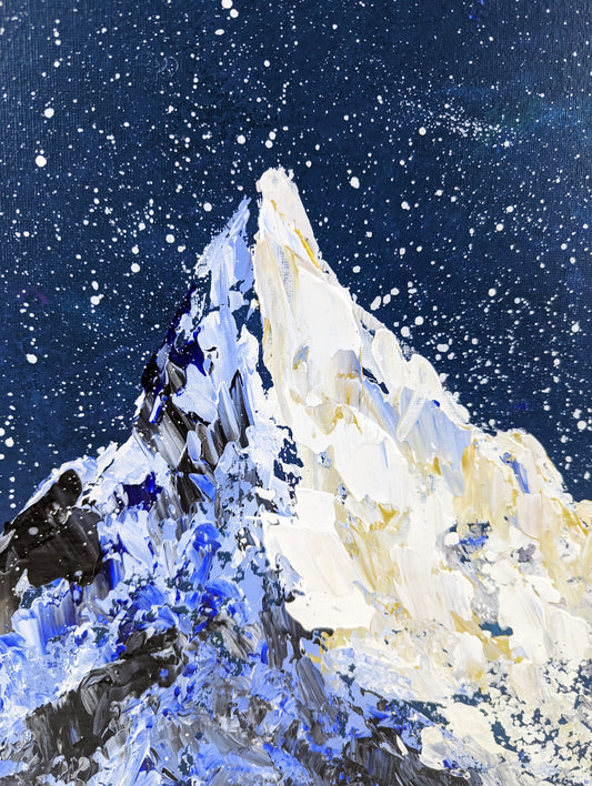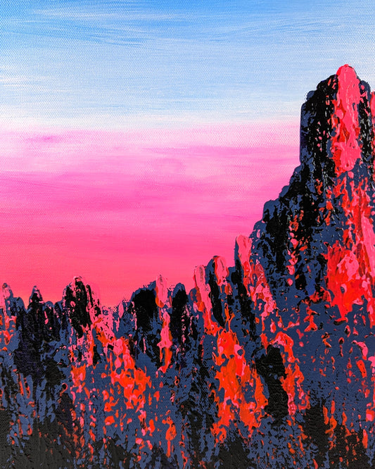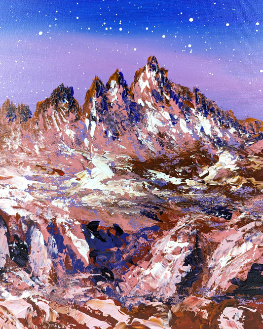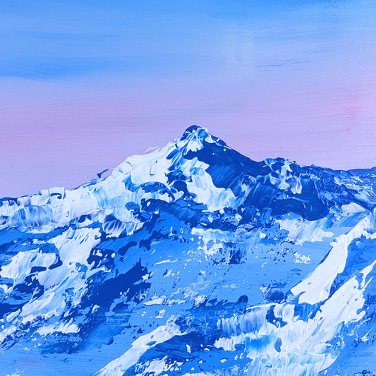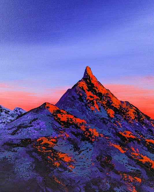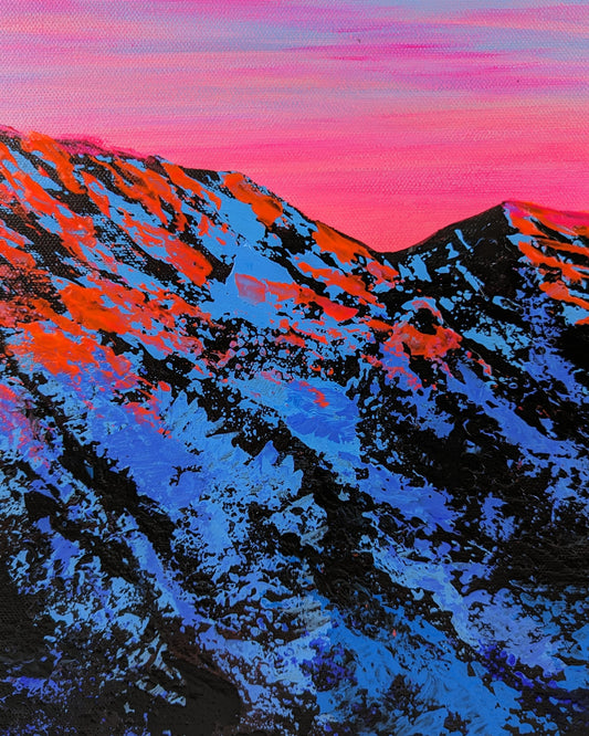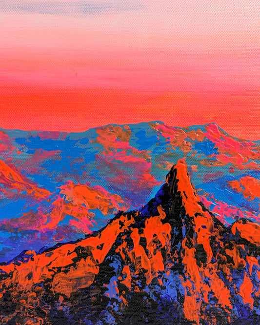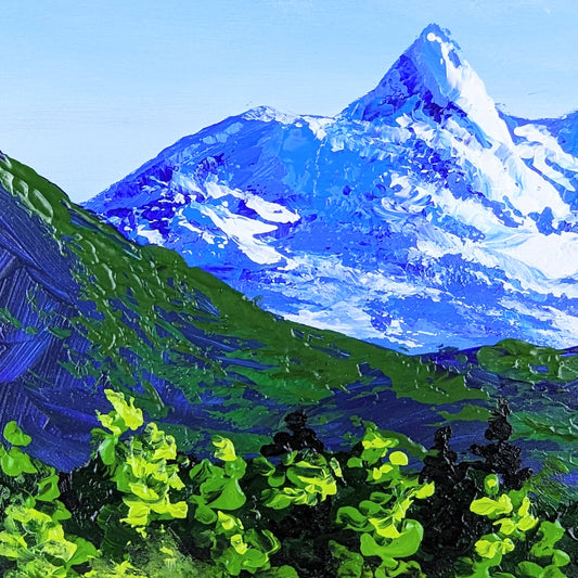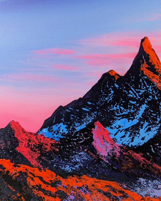 This is Caroline Annabel, born and raised in Tamil Nadu, India, and now living in the States. Growing up in a bustling city, I missed out on the serene beauty of nature. My artistic journey began with a visit to one of the world’s most stunning locations, Mount Rainier in the state of Washington. The breathtaking view of the mountains inspired me to paint them. Even after attempting to paint different subjects, there was just something about the mountains that I couldn't resist. Fast forward a few years, and here I am—a full-time artist, dedicating my heart and soul to my craft! Each piece is a testament to the beauty of God's handiwork! My latest collection, titled 'I Look Up to the Mountains,' comprises 16 paintings, each capturing the breathtaking beauty of sunrise and sunset amidst mountain landscapes. Explore this page, and should you find a piece that truly resonates with you, it can be yours to cherish!